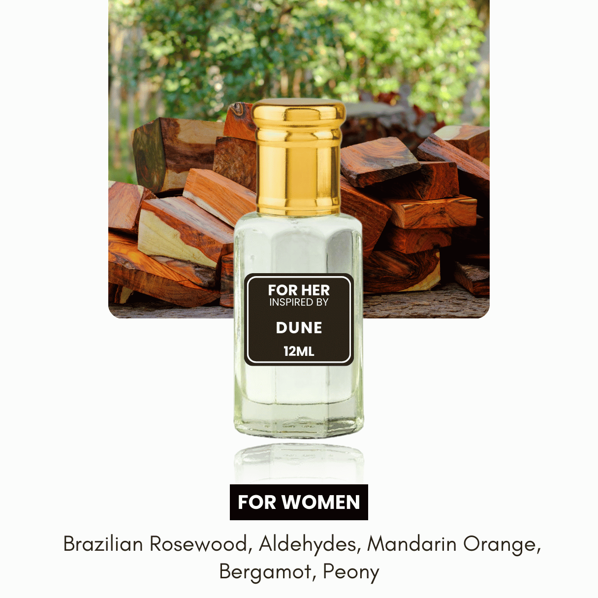 ✅ Description: Dune, launched in 1991, is an amber woody fragrance designed for women by Jean-Louis Sieuzac, Nejla Barbir, and Dominique Ropion.
