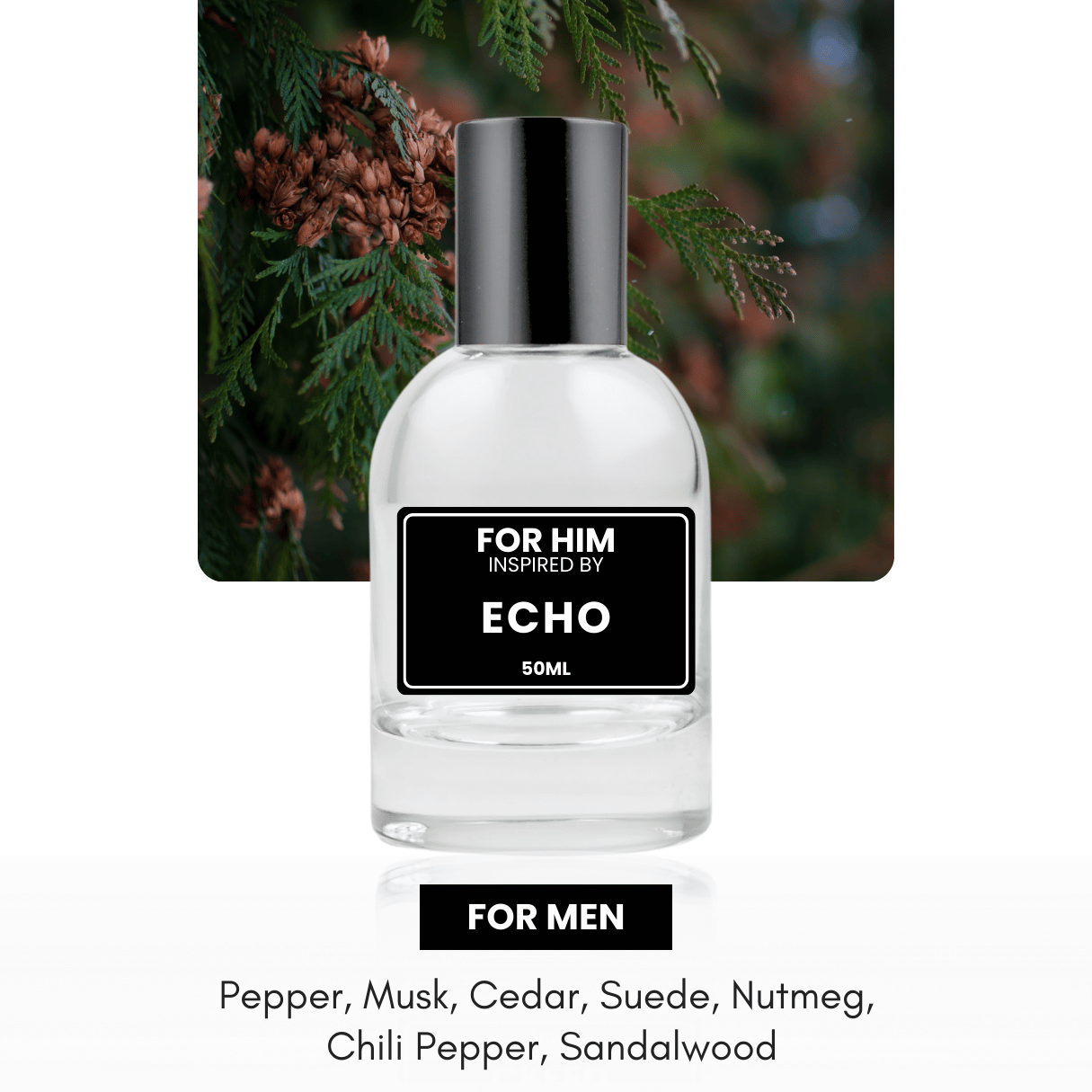 ✅ Description: Echo, the sixth fragrance from Davidoff, targets middle-aged men with its aquatic and metallic notes of aldehydes and white suede. The base boasts a blend of chili, nutmeg, black pepper, musk, cedar, sandalwood, and white suede. The bottle, designed in an urban style, adds to its allure.