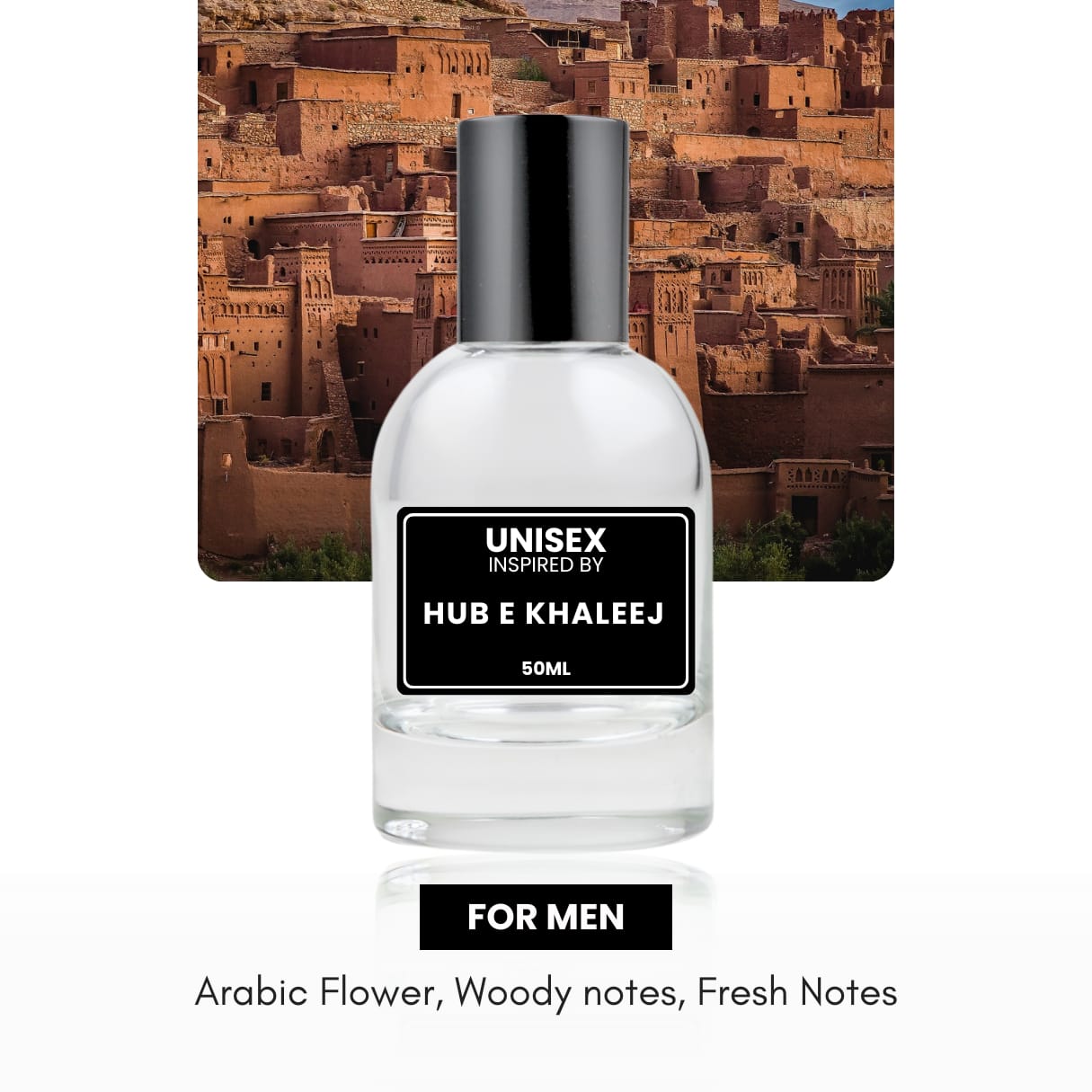 Hub-E-Khaleej by Arabic Fragrances : Perfume, a captivating unisex fragrance collection crafted for both men and women. Inspired by the exotic beauty of Arabic flowers, this collection offers 7 enchanting variants that promise to captivate your senses.