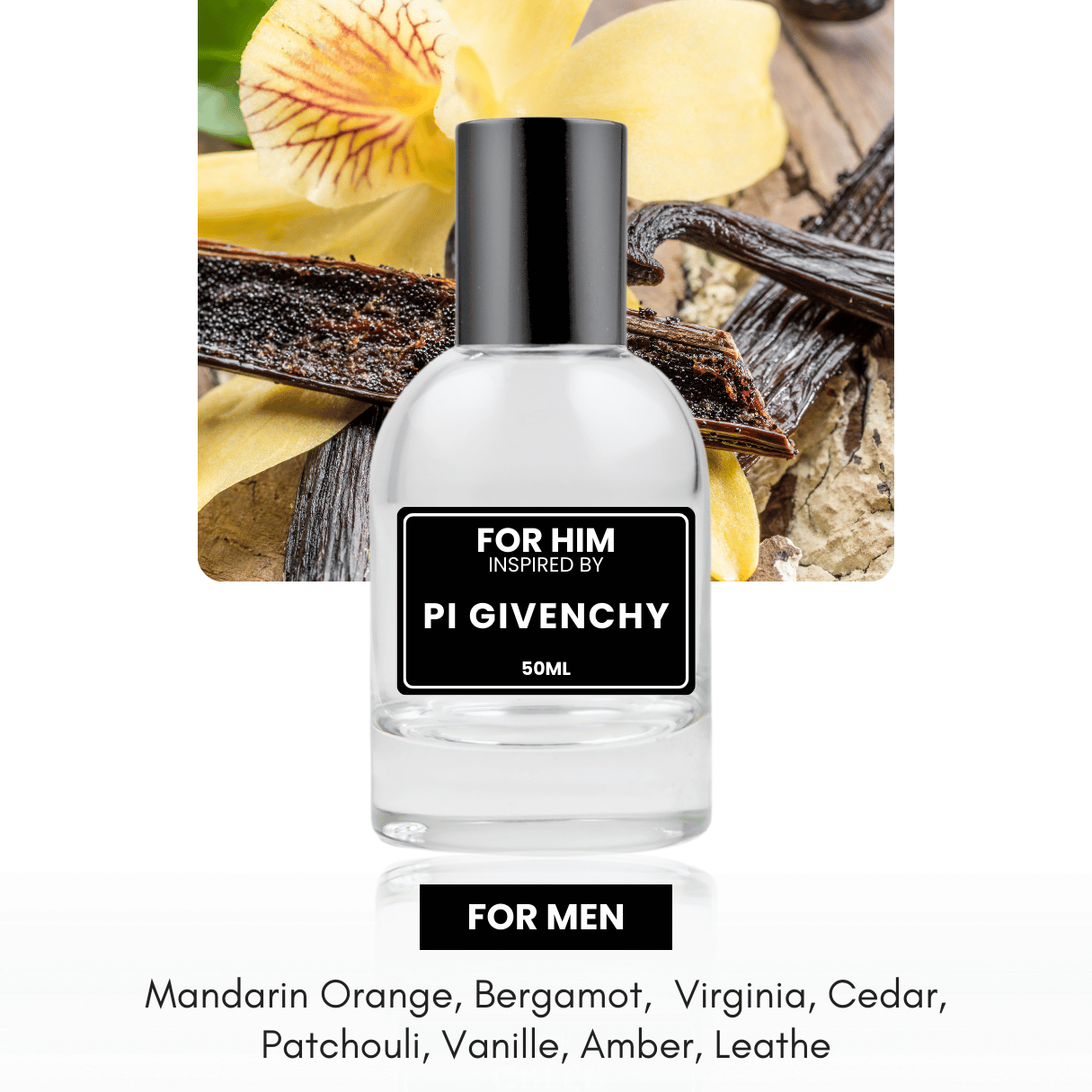 Ground yourself in the warmth of the base notes, where the sweet and comforting accords of Vanille and Amber meet the bold and masculine essence of Leather, leaving a lasting impression that captivates the senses.