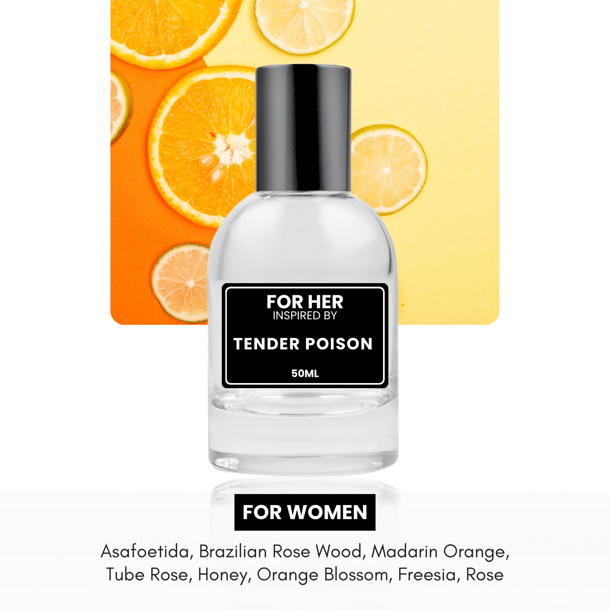 ✅ Passionate Heart: At its heart, Tender Poison reveals a sublime fusion of Tuberose, Honey, Orange Blossom, Freesia, and Rose, symbolizing the woman who conceals immense passion behind her delicate facade.