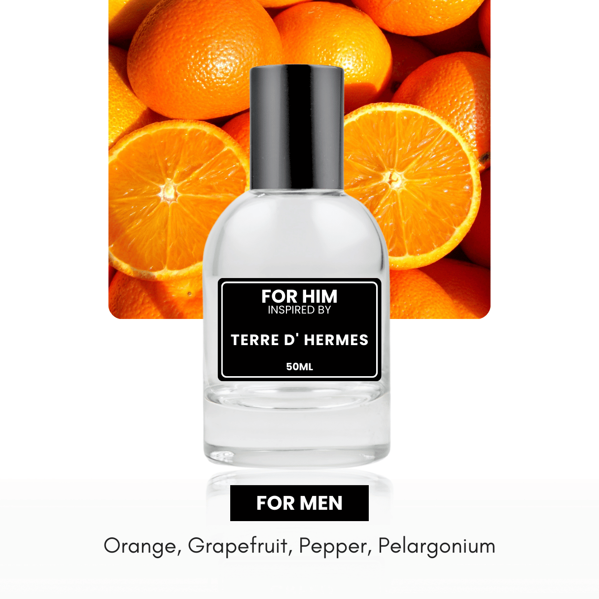 Inspired by the essence of earth, roots, and territory, Terre d'Hermès is a vertically structured scent that takes the wearer on a journey through nature's elements. It begins with a vibrant burst of Orange and Grapefruit, exuding freshness and vitality. The heart of the fragrance reveals Pepper, Pelargonium, and Flint, adding depth and complexity to its composition. Finally, the base notes of Vetiver, Cedar, Patchouli, and Benzoin provide a warm and sensual finish, leaving a lasting impression.